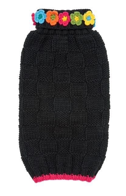 Black Floral Dog Sweater - UpCountry Black Floral Basketweave Hand Knit Sweaters