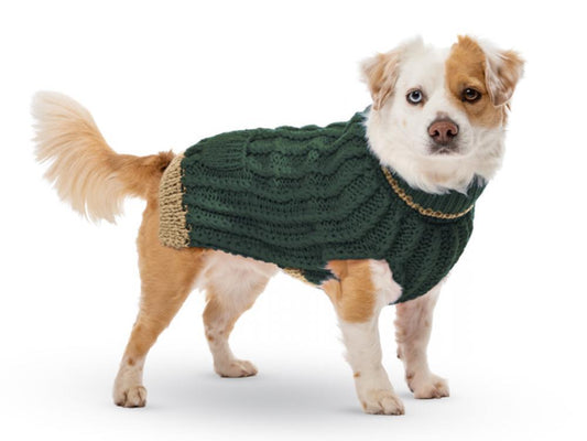 Green Dog Sweater - UpCountry Forest Classic Cable Hand Knit Sweater