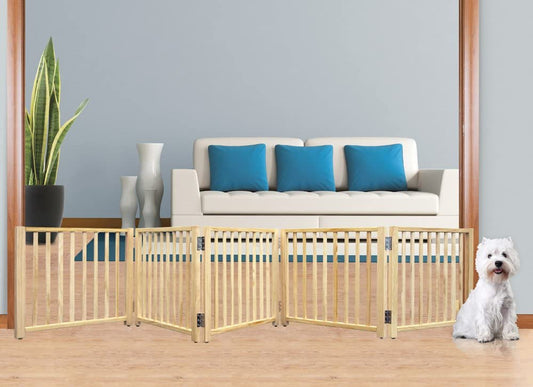 Folding Freestanding Dog Gate - Expands from 48 - 110 inches - Smart Design Folding Freestanding Gate 5 Panel - Four Paws