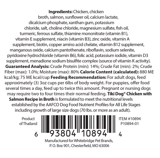 Chicken with Salmon Wet Dog Food - Tiki Dog Meaty High Protein Diet Chicken with Salmon Recipe in Broth Grain-Free Wet Dog Food, 3-oz cup, case of 8