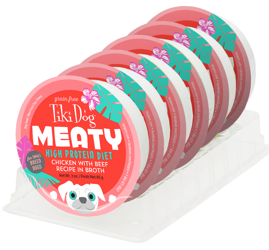 Chicken & Beef Wet Dog Food - Tiki Dog Meaty High Protein Diet Chicken with Beef Recipe in Broth Grain-Free Wet Dog Food, 3-oz cup, case of 8
