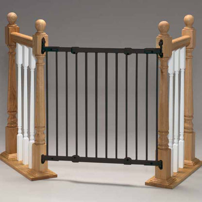 Perfect for stop of stairs when you need to mount one side on the wall and one side on a banister, but it can also be mounted in a hallway when the walls don’t line up. As a hardware mount gate, it provides maximum safety at the top of stairs and in high traffic doorways because there is no bottom threshold to potentially trip over as found on pressure mount gates. Hinge and Latch side hardware can be mounted on an angled surface. Easy one hand adult operation. Quick release hardware allows gate to be easily removed when not needed. Directional stop prevents gate from swinging out over stairs.