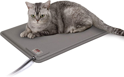 All KH heated beds and pads feature dual thermostats and are designed to warm to your pet's normal body temperature when he/she lies on the pad. When your pet is not on the pad, the heat will dissipate into the air and the surface temperature will vary according to the ambient air temperature. All KH heated products are thermostatically controlled to heat to 102° F, regardless of the size. Dual thermostat simply means there are two internal thermostats that will keep the surface of the bed at 10-15° F above ambient air temperature when your pet is not on the bed. When your pet lies on the bed, it will warm to about 102° F.