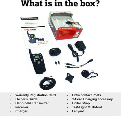 The BigLeash Remote Dog Training Collar is a safe and effective training tool with more user-friendly features than other remote trainers. It is the only remote trainer with digital FM technology and exclusive "In-Touch" two-way communication between the hand-held transmitter and the dog’s receiver collar. A second dog can easily be added and separate settings can be saved for each dog (Purchase of an additional collar required).