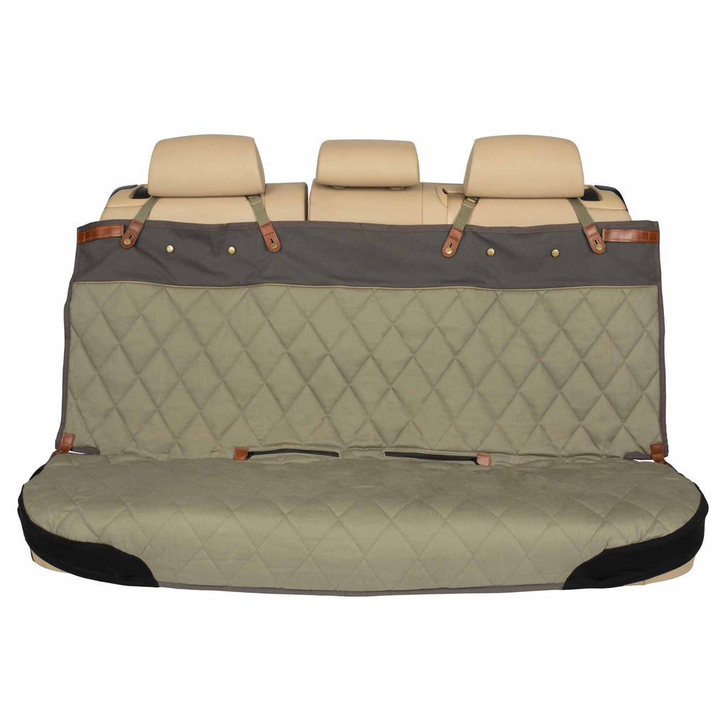 The PetSafe Happy Ride Quilted Bench Seat Cover, made with heavy cotton twill fabric, provides extra durability to protect your seats from dog hair and wet, muddy paws. This waterproof bench seat cover fits the back seat of most cars, trucks and SUVs, measuring 45 inches long by 56 inches wide. The cover is easy to use; just secure the head straps and seat anchor tubes in place and use the elastic panels and lower straps to keep the cover snugly fit to your car seat. If your seat cover is ready to be cleaned at the end of a fun-filled day with your best friend, simply toss the cover into your washing machine. PetSafe brand is here to help you and your pet live happy together.
