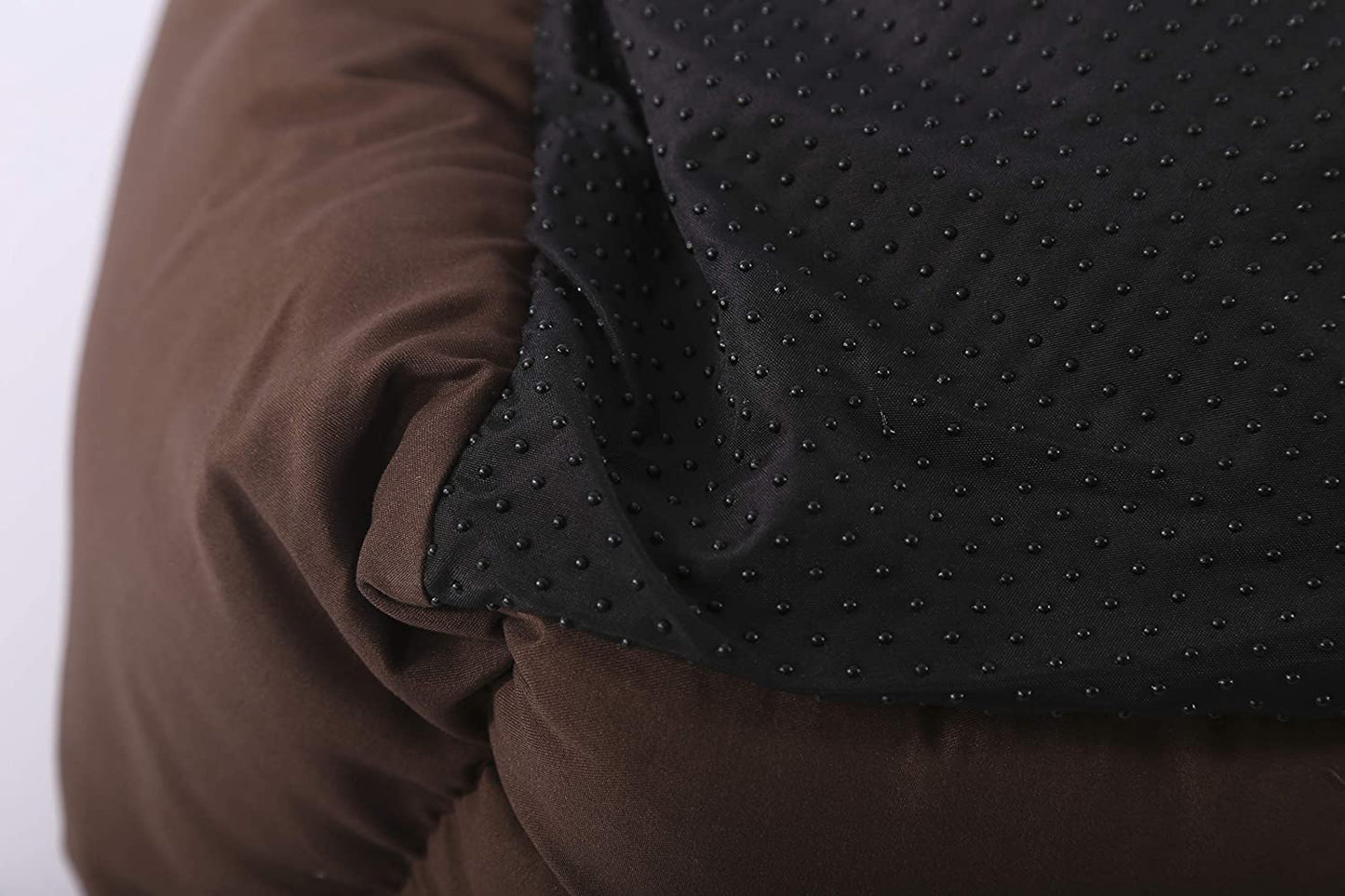 This self-warming bed in available in 2 color combinations. The outside of the bed is in poly/cotton and the inside is lined in soft microfleece. The pillow has a layer of metalized insulation that radiates warmth generated from the pets own body heat. Completely machine washable and filled with premium polyfil made from recycled plastic bottles. The bottom of the bed has a layer of "stay put" non-slip fabric for stability.