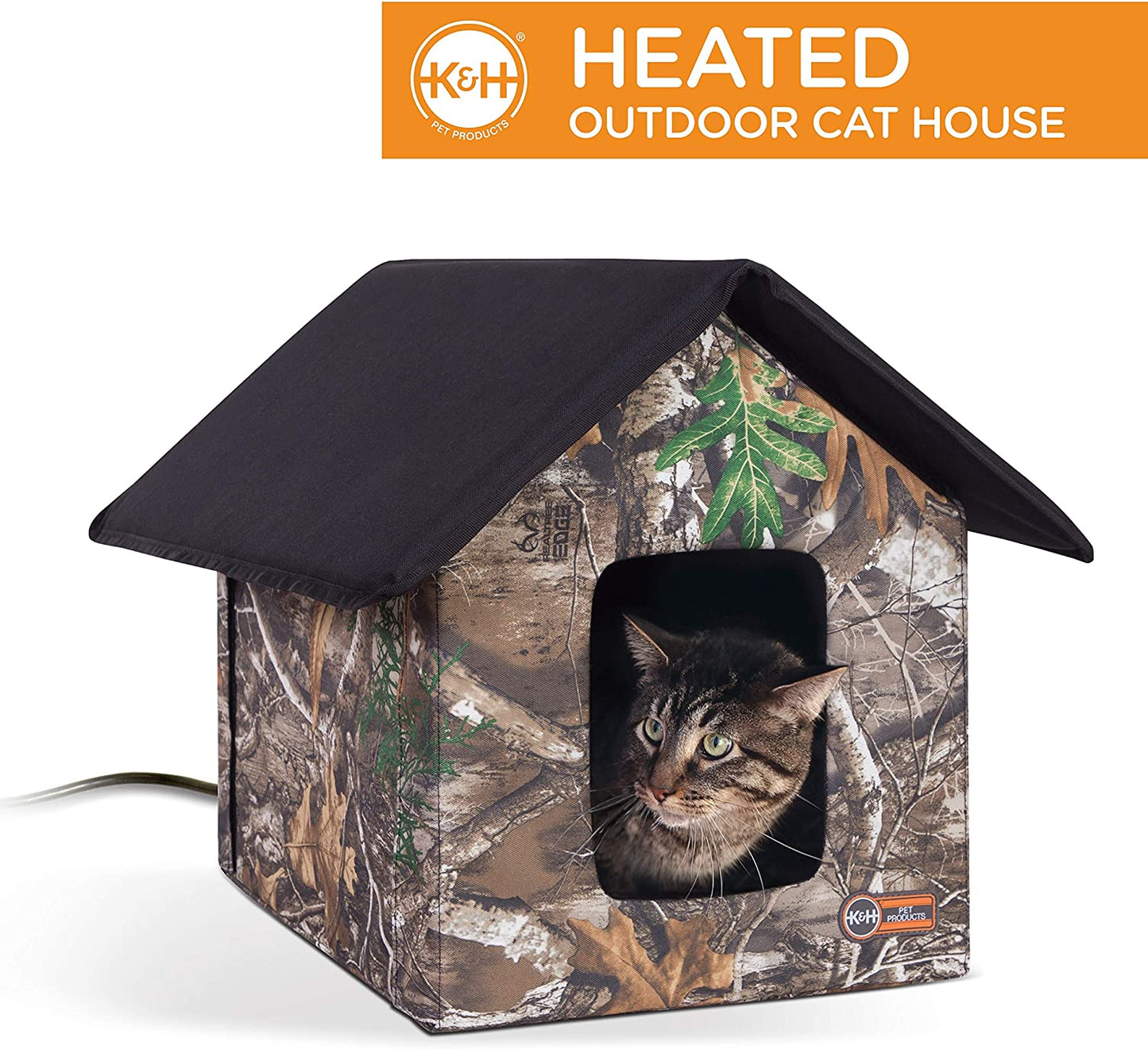Outdoor Camo Heated Cat House - Realtree Thermo Outdoor Kitty House - 18" x 22" x 17" - K&H Pet Products